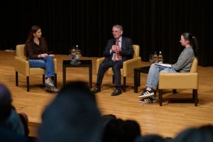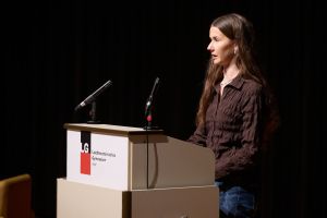 Sein Wunsch war ein Gespräch mit jungen Menschen am LG. Deshalb bereiteten die Schülerinnen Hannah Heeb und Emma Uebersax, die beide den von Andreas Aczel und Christian Marti geleiteten WPK „Holocaust – sich an das Unsagbare erinnern“ besuchten, einige Fragen vor. Ivan Lefkovits begann seine berührende und erschütternde Geschichte zu erzählen: von der Internierung im KZ Ravensbrück, über den Transport ins KZ Bergen-Belsen bis hin zur Befreiung von Bergen-Belsen durch die Briten und zur Heimkehr in seine Heimatstadt Prešov in der Slovakei. Die Schülerinnen stellten dabei immer wieder zum Thema passende Fragen.