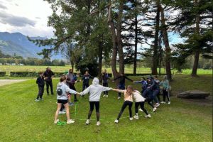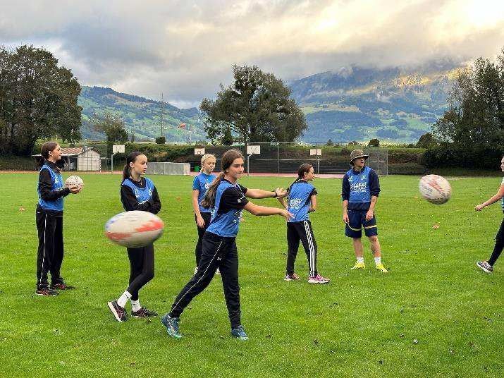 In addition to basketball, unihockey and baseball, we found out more about other lesser-known sports. We started the week with a few ice-breaker games to get to know each other better. Then we started with slackline in the morning. In the afternoon we went to Feldkirch and played baseball. On Tuesday we got to know a new sport: Lacrosse, which is played with a stick with a net. This sport comes from Canada and is the country's national sport. In the afternoon, a coach from the Czech Republic came to us and showed us the sport of floorball. On Wednesday we started with rugby. Rugby is a very strenuous sport; we got wet and dirty, but it was all the more fun. In the afternoon, we played basketball, different throwing techniques were explained to us and we played some matches. On Thursday morning, we went to the golf course in Gams. It was a great experience even though it was cold. When we returned to school in the afternoon, we played Frisbee, but that wasn't so easy, because the disc has to be held in a special way. We worked well together, had a great week and would like to thank everyone who showed us their sport.