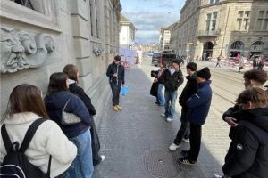 Nach dem Simulator hatten wir noch kurz Zeit, die Ausstellung im focusTerra zu besichtigen, bevor die geologische Stadtführung in Zürich begann. Zunächst erfuhren wir, wie sich die Stadt Zürich im Laufe der Zeit entwickelt hat. Anschliessend begaben wir uns nach draussen und erkundeten sechzehn verschiedene Posten, die wir zu Fuss abliefen. Dabei lernten wir unter anderem, dass der Kalkstein in der Region Zürich eine eher grünliche Färbung aufweist. In anderen Regionen kann seine Farbe jedoch leicht variieren und unterschiedliche Grüntöne annehmen.