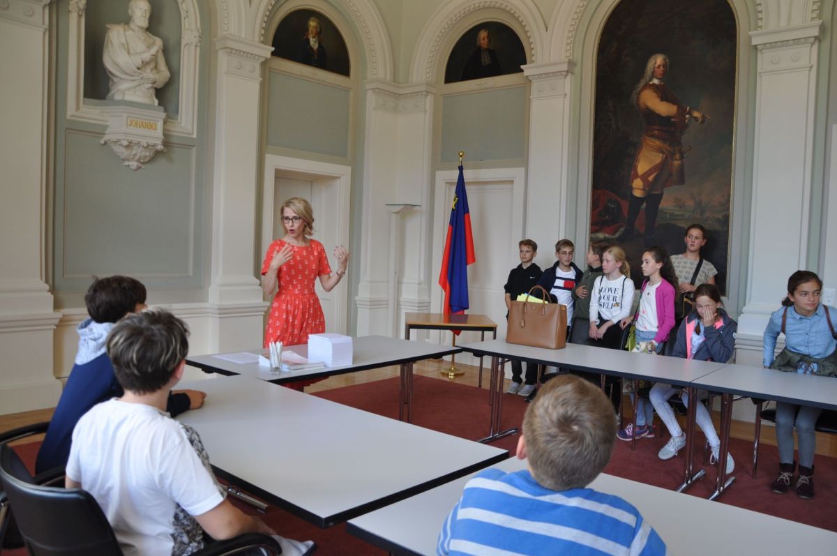 Schülerinnen und Schüler des Liechtensteinischen Gymnasiums bekamen einen seltenen Einblick in die politische Arbeitswelt und durften in der „Schatzkammer“ die Schätze Liechtensteins betrachten.