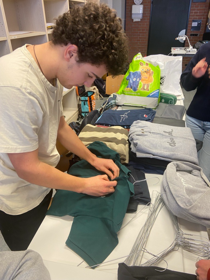 Bereits in der ersten Woche konnten wir grossen Andrang feststellen und viele Kleidungsstücke wurden mitgenommen. Bereits nach zwei Tagen zeigte sich auch im Kleiderabgabekarton der erste Erfolg. Die eingegangenen Kleidungsstücke hängten wir in der nächsten Klassenstunde gemeinsam an den Kleiderständer auf, damit diese einen neuen Besitzer finden konnten. Es erstaunte uns, wie viele Kleidungsstücke abgegeben worden sind.