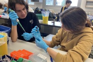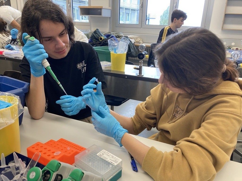 Am nächsten Tag standen Biologie und Chemie im Mittelpunkt. Ein besonderer Kurs zur personalisierten Medizin und Alzheimerforschung ermöglichte es den Schülerinnen und Schülern, das Risiko verschiedener Individuen, an Alzheimer zu erkranken, zu bestimmen. Hierzu wurden bereits vorliegende DNA-Proben auf ein spezifisches SNP (single nucleotide polymorphism) im ApoE (Apolipoprotein E)-Gen untersucht.