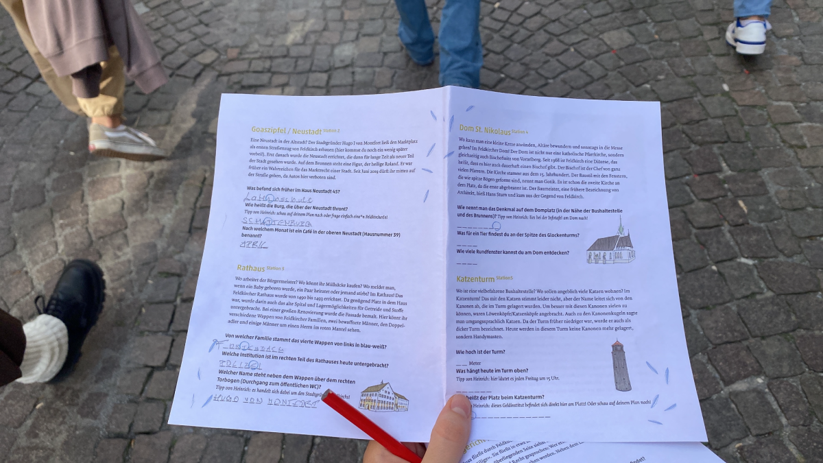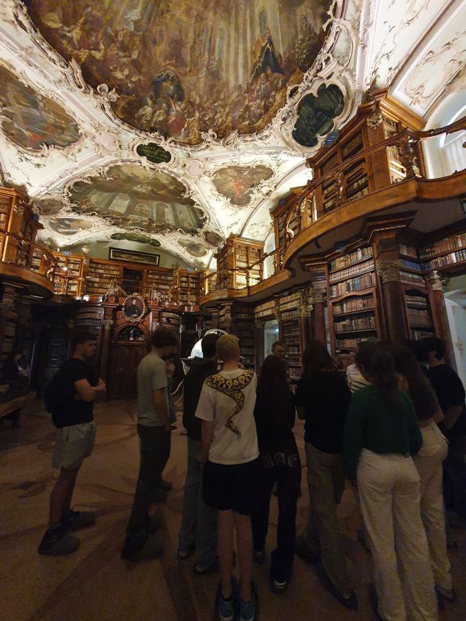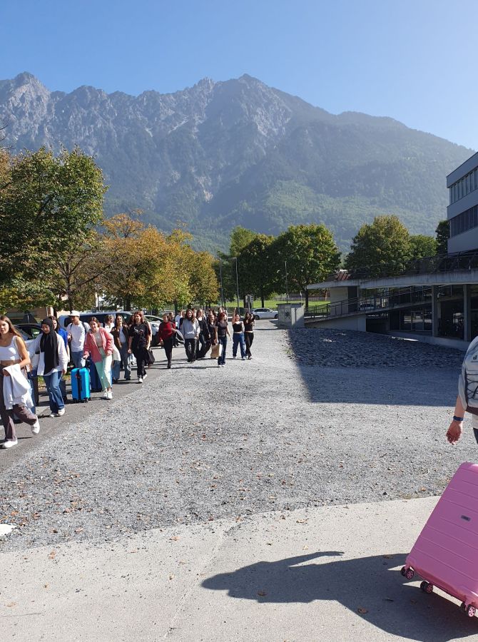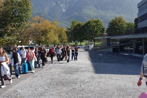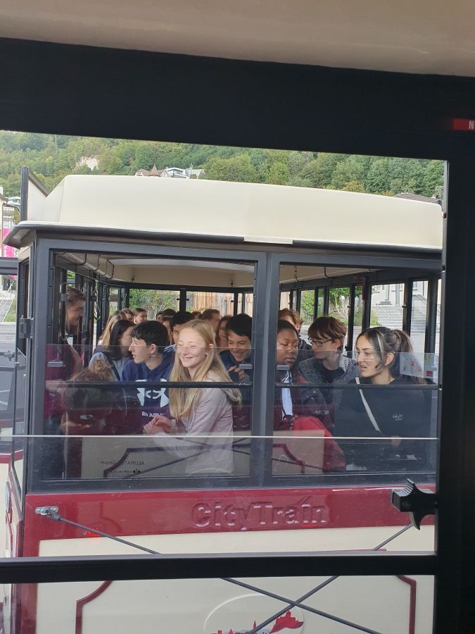 Die 15 Schweizerinnen und Schweizer kamen am Montagmittag in Schaan an und wir lernten uns kennen, wir erzählten ihnen einiges über Liechtenstein und zeigten ihnen die Schule. Am Dienstag ging es im Städtle auf eine kleine Sightseeing-Tour mit der Schmalspurbahn und wir sahen uns gemeinsam einen Film über Liechtenstein an. Im Anschluss unternahmen wir einen Ausflug nach Feldkirch, um auch ein wenig von Vorarlberg zu sehen. Nach einem gemeinsamen Mittagessen machten wir dort in Gruppen eine Stadtrallye. Am Mittwoch durften wir im Peppermint ein kleines, mit Gummiband betriebenes Gefährt bauen. Den Nachmittag hatten wir frei, um unseren Gästen individuell etwas zeigen zu können oder einfach ein wenig zu entspannen. Am Donnerstag fuhren wir dann nach St. Gallen, wo wir eine Führung durch die Stiftsbibliothek erlebten. Auch hatten wir am Nachmittag Zeit, St. Gallen ein wenig zu erkunden. Am Freitag, dem letzten Tag, erhielten wir eine spannende Führung im Landtag und gestalteten anschliessend ein Plakat.