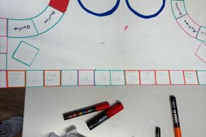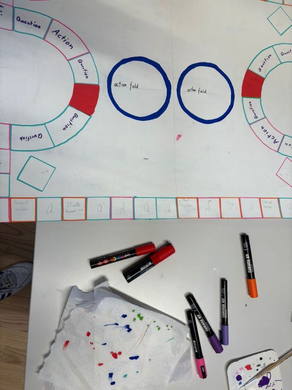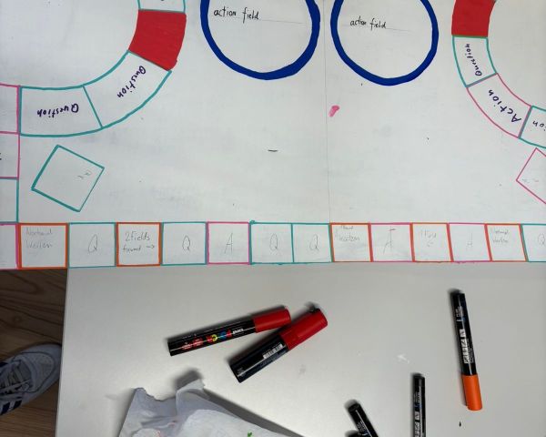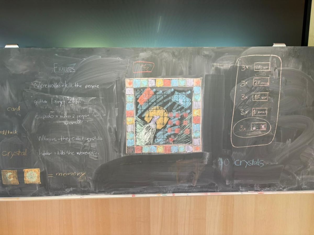 Schon der Einstieg machte Spass: Aus Papier wurden Türme gebaut, und der höchste sowie stabilste Turm gewann. Danach folgte die eigentliche Aufgabe – ein eigenes Spiel entwickeln. Dabei liessen sich die Gruppen von Klassikern inspirieren und brachten überraschend kreative Ideen hervor. Besonders spannend war die Kombination von Monopoly und Werwolf. Auf einem Monopoly-Brett zogen Spielfiguren mit ungewöhnlichen Namen wie „Karl Käse“ oder „Gertrude“ umher, ergänzt durch Karten und Regeln aus dem Werwolf-Spiel.
